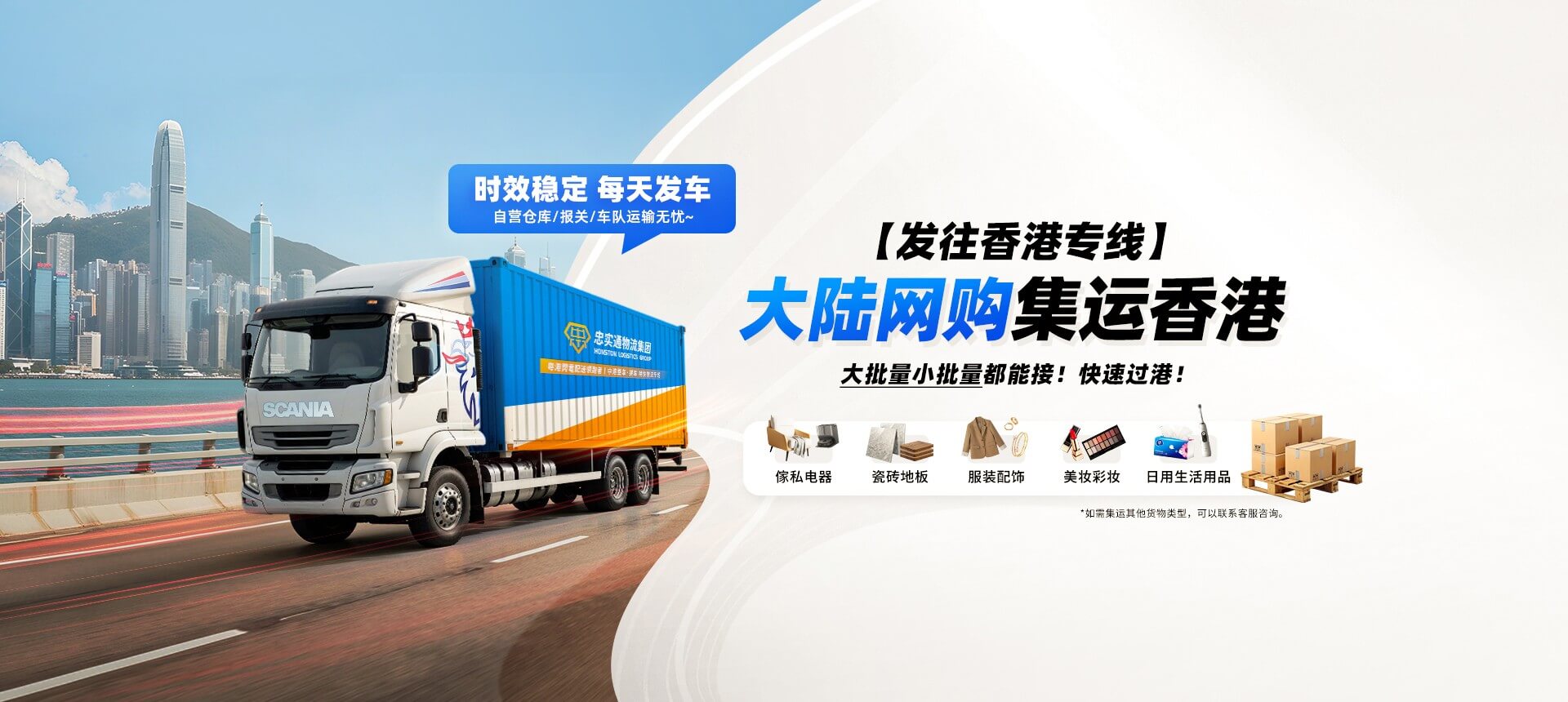 作为深耕广州发往香港的物流服务商,忠实通物流集团凭借十余年的专业沉淀,依托自营车队、专属货仓与自主研发的系统,为广州及周边客户提供高效、安全、经济的到香港物流专线服务,助力粤港商贸畅通无阻。